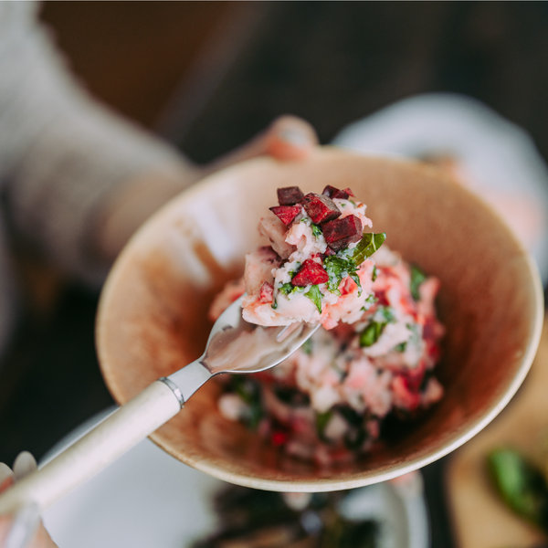トラウトサーモン(チリ産)、鶏卵、ビーツ、マヨネーズ、 りんご酢、食塩、砂糖、エルブドプロバンス、ブラックペッ パー、ガーリックパウダー、ドライオレガノ、ドライバジル/ 調味料(アミノ酸)、香辛料抽出物、(一部に卵・さ け・大豆・りんごを含む)