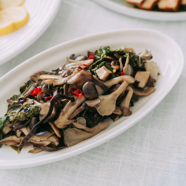 エリンギ(国産)、ぶなしめじ(国産)、食用調合油 (ひまわり油、オリーブ油)、まいたけ、ケール、アンチョ ビ、りんご酢、きくらげ、砂糖、ガーリックパウダー、鷹の 爪、(一部にりんごを含む)
