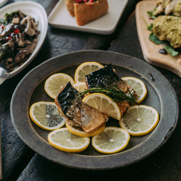 サバ(ノルウェー産)、レモン、食用調合油(ひまわり 油、オリーブ油)、ローズマリー、食塩、ドライオレガノ、ド ライバジル、にんにく、(一部にさばを含む)