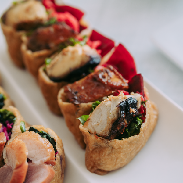 ケール入り酢飯(精白米(国産)、リンゴ酢、ケール、 砂糖、食塩)、味付すしあげ(国内製造)、ほうれん 草、合鴨スモーク、紫キャベツマリネ(紫キャベツ、りんご 酢、砂糖、食塩)、ケール、カレー調味料 /調味料 (アミノ酸等)、ポリリン酸Na、酸化防止剤(V.C)、 発色剤(亜硝酸Na)、増粘剤(グァーガム)