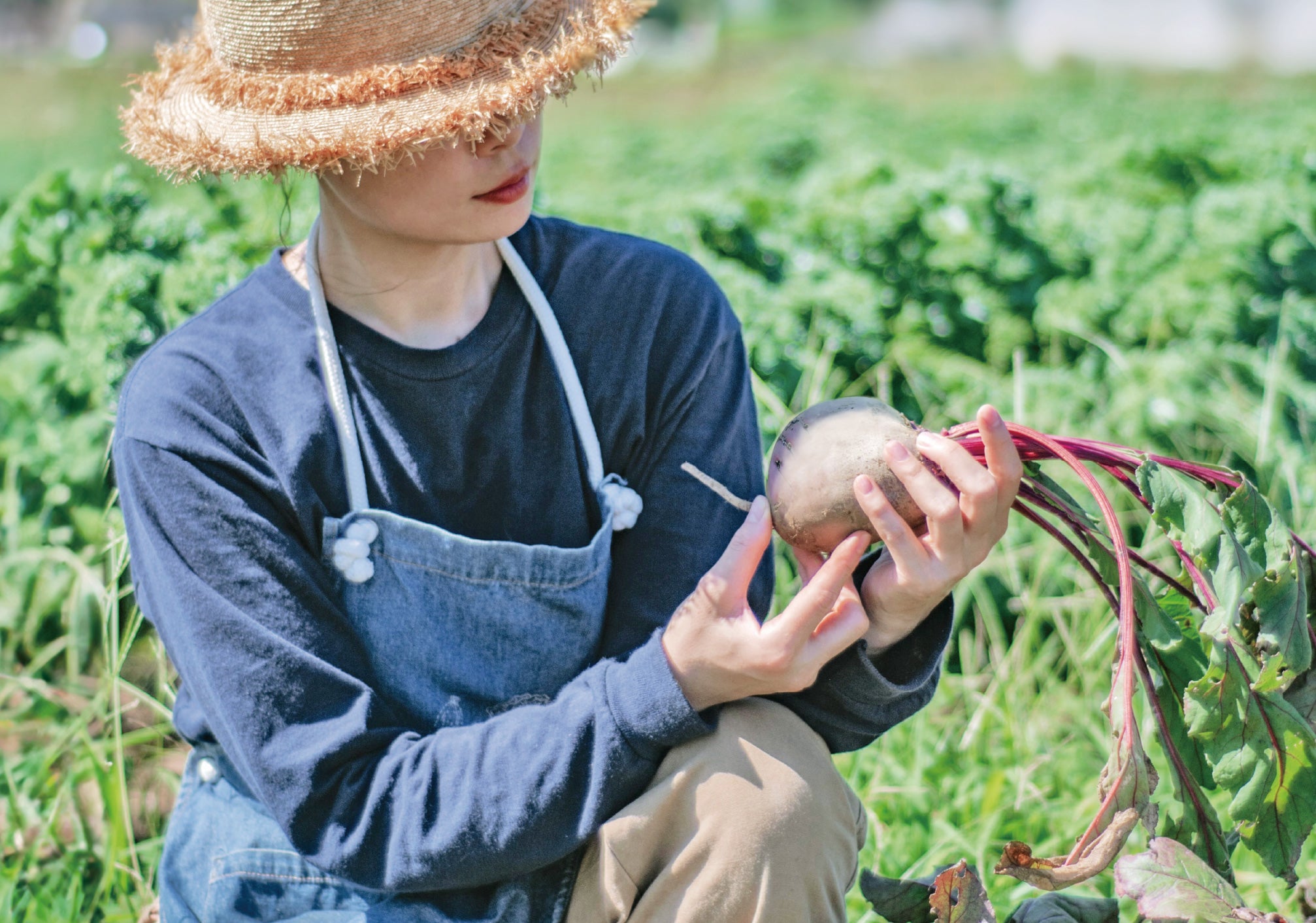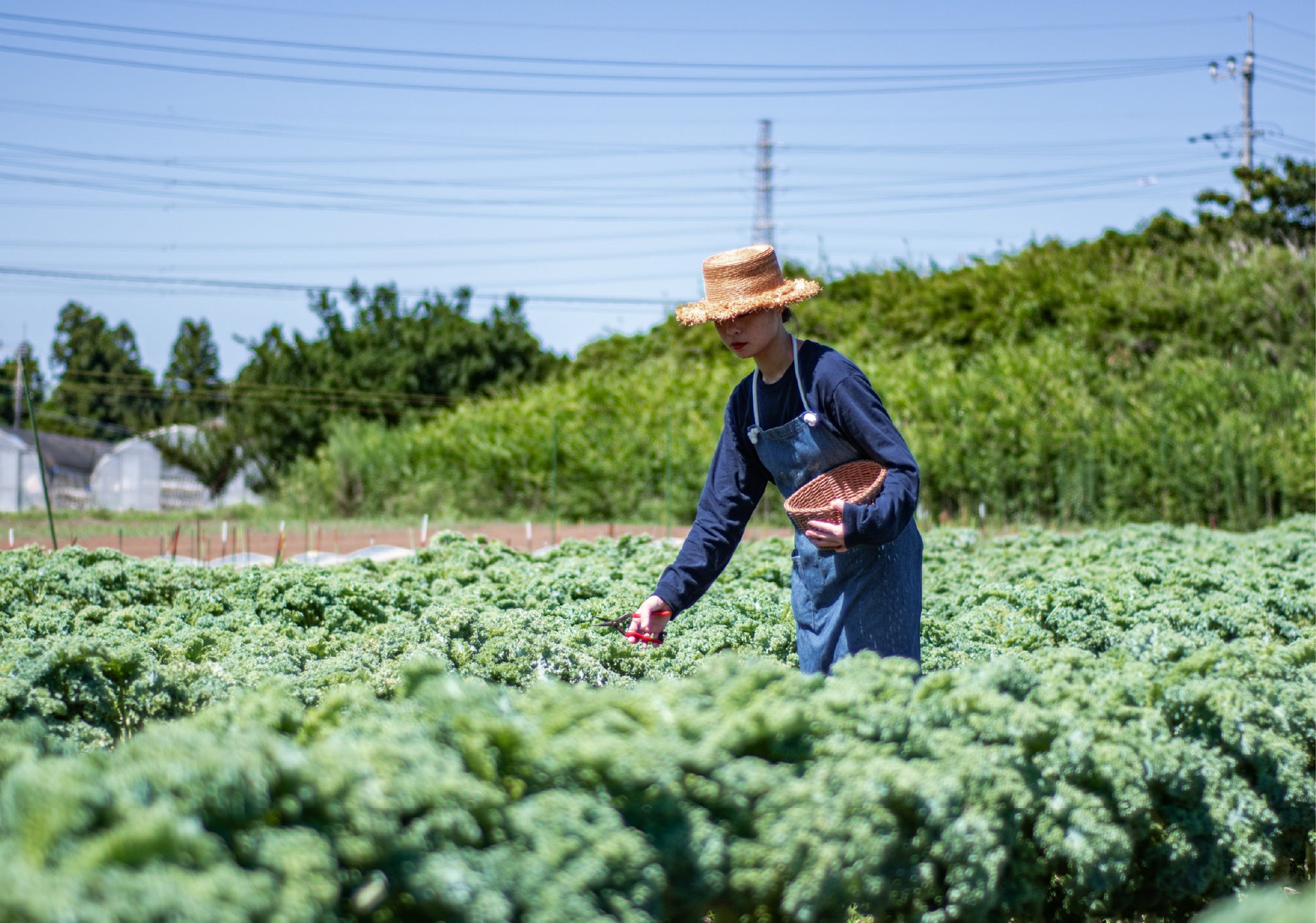 私たちは日本ではまだ馴染みの薄い色鮮やかで栄養価の高い西洋野菜に着目し、栽培をしています。事業の根底にある「土地を活かして恩返しをしたい」という想いを胸に、2022 年に自社農園「Mr. ベジろべぇー」を開園しました。有機農業に取り組む千葉県山武市で専任のスタッフが有機 JAS 認定を目指し、日々努力を重ねています。北総台地の寒暖差の大きい土地において、土の力を最大限に引き出しながら、除草剤を使わず手作業で雑草を取り除くなど環境に負荷をかけない農法を実践しています。一つ一つの西洋野菜を、心を込めて丁寧に、愛情をもって栽培しています。
